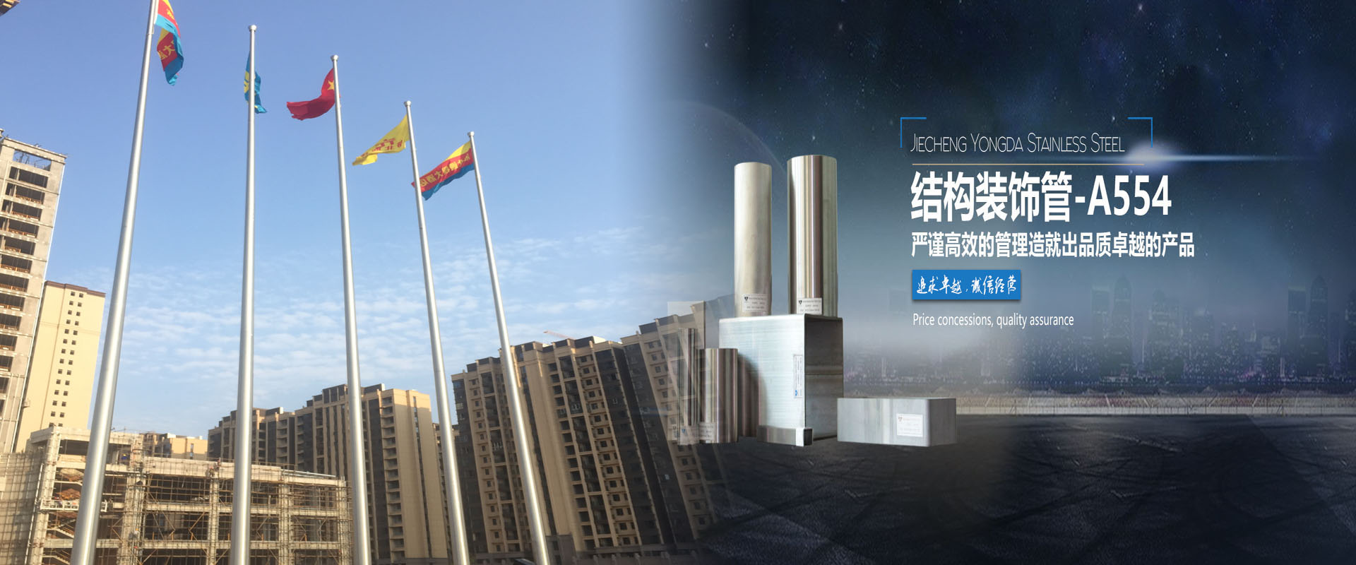 湖南杰誠永大不銹鋼有限公司是一家集研發、設計、生產、銷售于一體,專業生產錐形旗桿、電動旗桿,頒獎旗及食品\藥品機械用不銹鋼管,薄壁飲用水管等系列產品的綜合型現代化企業。旗桿產品在廣東省、湖南省、江西省等重要行政機關擔任重大升旗任務,不銹鋼管也成為重要場館,眾多食品藥品機械廠...
